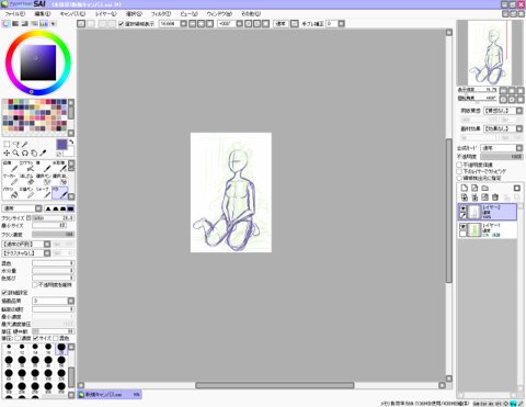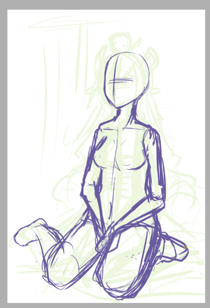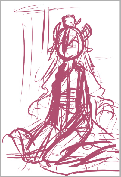 だいたいのイラストのイメージが固まったら、次はそれを新規レイヤーに軽く清書していきます。