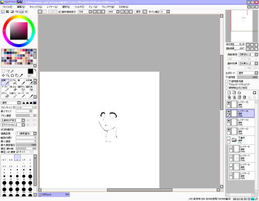 『前髪』『もみあげ』『後ろ髪』『頭』ぐらいにレイヤー分けして書いています。