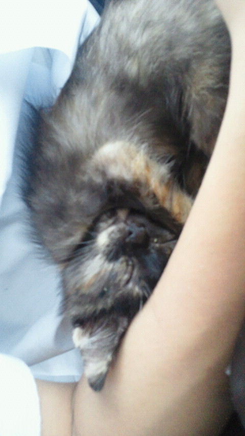 ソラちゃんはいま、遊び疲れて私の膝の間で寝てますw